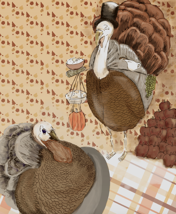 Recipe: Preheat oven to 375°F. Cover a baking sheet with foil. Dice one sweet potato, disperse chunks on sheet and sprinkle with olive oil, salt, and pepper. Bake for 20 minutes, or until sweet potatoes are tender, then set aside. Set the stove to medium-heat and cook five strips of chopped turkey bacon in a skillet. When grease accumulates, add two chopped apples, five stalks of celery, and one yellow onion. When the onions begin to become translucent, add one pound of ground turkey sausage, one container of mushrooms, and two tablespoons of white wine vinegar. Sautée until turkey is almost completely cooked through. Once the sausage is done, add mixture to a bowl to cool. Add two beaten eggs to the sausage mixture, and add a third cup chicken broth along with sweet potatoes, one cup chopped pecans, and one cup dried cranberries. Place the mixture on a foil-lined baking sheet or in a 9×13 baking dish. Bake at 375°F for about 20 minutes, until everything is slightly browned.