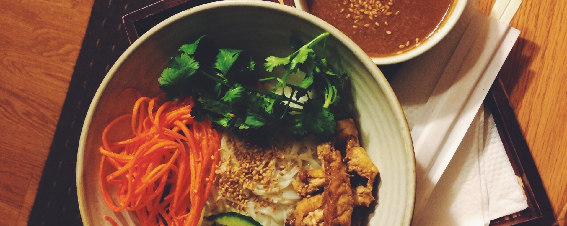 The food is also incredible. The noodle specials change frequently, but every dish is a winner. The tofu noodle bowl is a favorite of mine. This dish comes with bok choy, fried tofu, and noodles in a hot homemade vegetable broth. A spicier option on the menu is the soba noodle bowl, with sesame seeds, kale, and those signature long soba noodles. If you’re in the mood for something a little more DIY, the rice noodle bowl comes with fresh cilantro, carrots, cucumber, and fried tofu with peanut sauce for you to mix together for an insanely good dish.