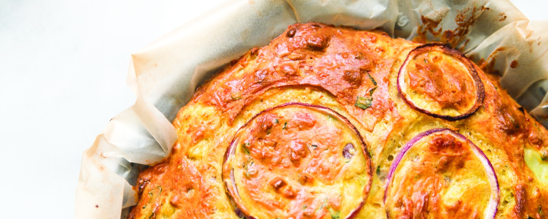 - Grease the base and sides of a cake pan with melted butter so the quiche won’t stick. Pour the cauliflower mixture into the pan and top with remaining onion rings. Place your pan on the center rack of the oven and bake for 45 minutes, or until golden brown. Test readiness by inserting a knife into the quiche—it should come out clean. Let cool for 20 minutes and serve.