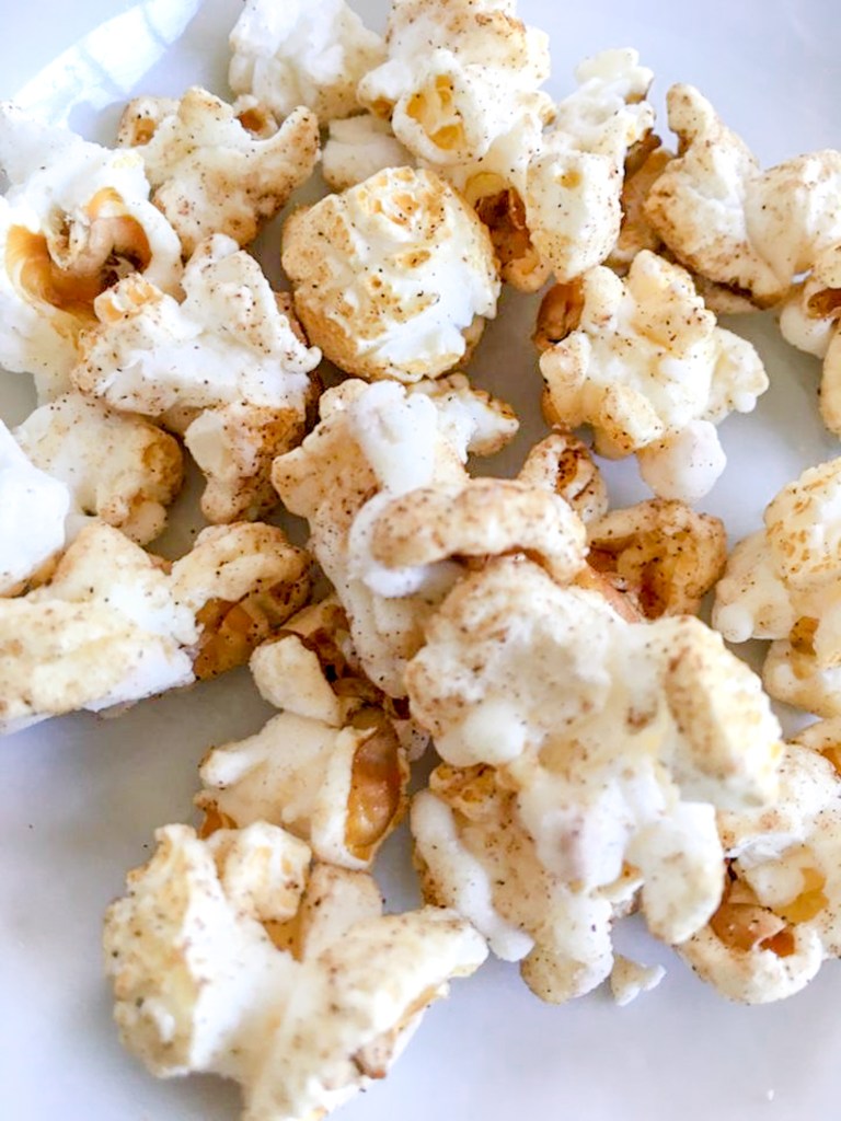 If you’re anything like me, you spend lots of time snuggled up on the couch watching movies during the chilly months of fall. I love to snack during a movie, and what snack is best for a movie? That’s right, POPCORN! Upgrade everyone’s favorite movie snack with this fall flavored delight.