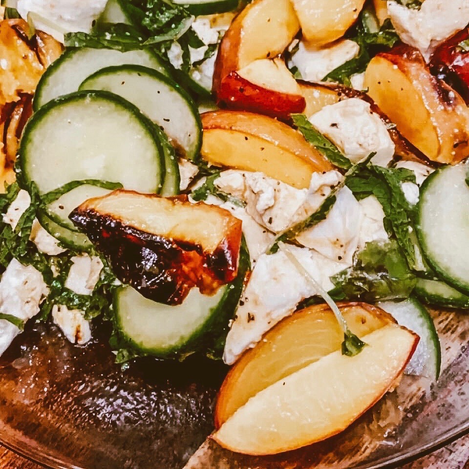 For this rendition on a traditional Caprese salad, nectarines add a slight sweetness to the dish which pairs excellently with creamy, salty, burrata. I would highly recommend grilling the nectarines, if you have the means to do so. As well as using fresh basil in the recipe, the flavors of the rest of the ingredients can be enhanced by creating a basil oil. First, quickly blanch the basil. Then put it through a blender with olive oil and leave the flavors to marinate for 30 minutes before straining. Because this salad recipe is so simple, don’t be afraid to get creative! For those who dislike tomatoes, cucumbers are an excellent replacement. I strongly encourage the addition of other herbs you may have lying around, such as parsley, mint, or tarragon.