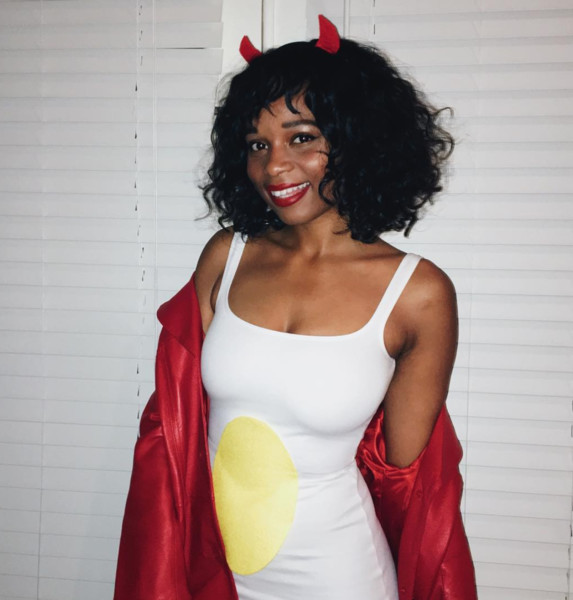 Not only does this look give you a two-for-one, a devil costume one night and deviled eggs the next, but it will have you stealing the show with your creativity too. You’ll need an all-red look with devil accessories. To add in the foodie touch, print out pictures of eggs and tape those right onto your outfit. Then you are all set to steal the costume contest win.