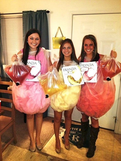 Halloween is not necessarily a one day event, so it is important to have multiple costumes ready to roll. This is a super fun costume that you can do solo or with a group. You’re going to need a clear garbage bag and a whole bunch of tissue paper. Choose your favorite wine bag flavor and find tissue paper of a similar color. Cut holes out of the garbage bag for your limbs and start stuffing it with crinkled up tissue paper. Bring a real wine bag as an accessory and drink combo (if you’re of age) and be ready to impress the whole party.