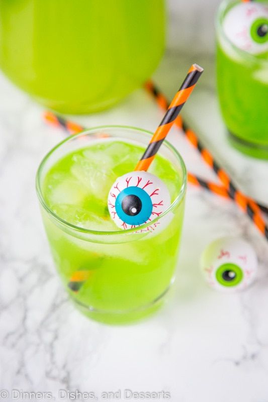 This lime green punch is the perfect cauldron potion for your halloween celebration. Monsters of all kinds will fiend over this bubbling beverage. The foamy top with eyeballs swimming about truly summons guests in with a witch’s spell. Amee’s Savory Dish explains how to make this perfect halloween punch: