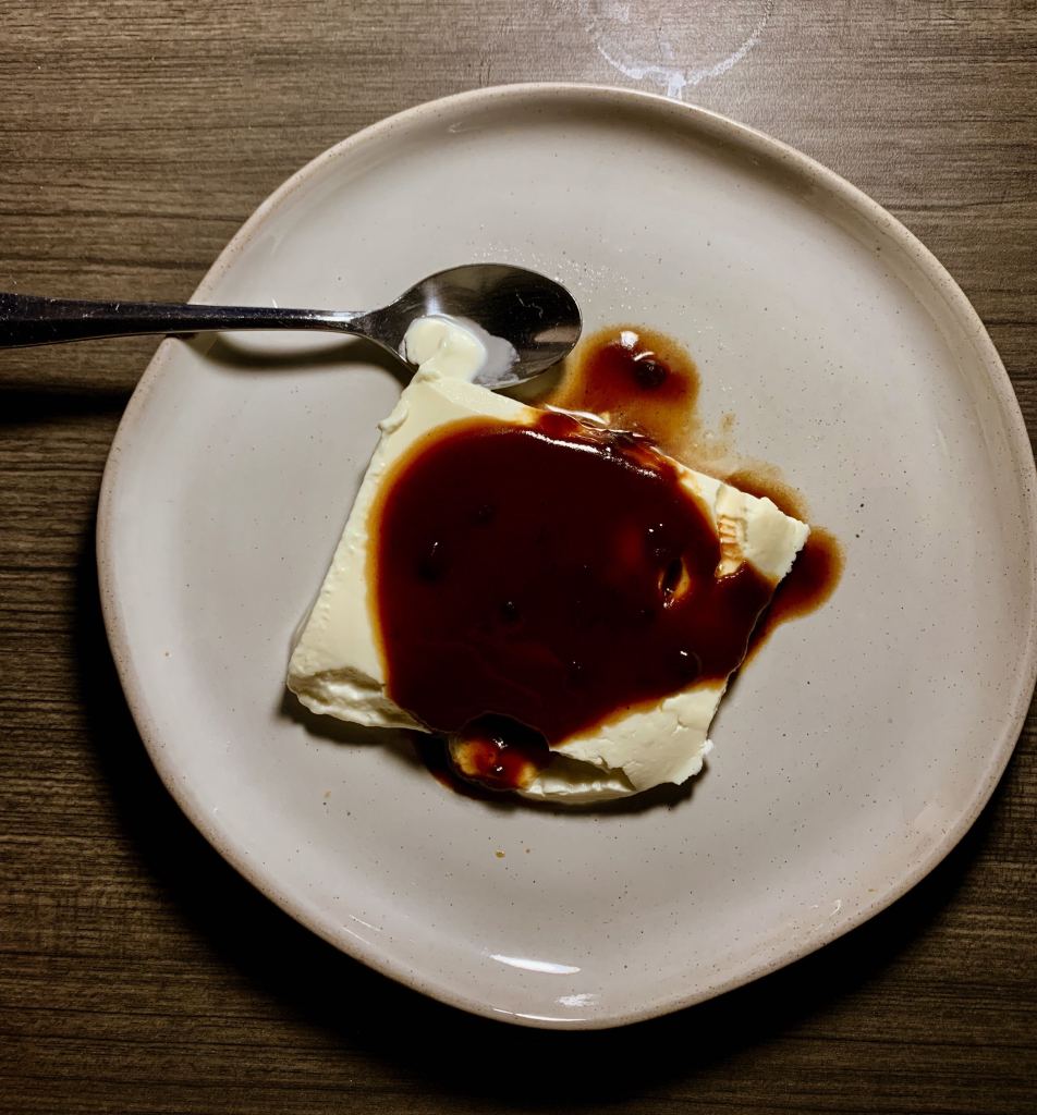Panna cotta with red bean-balsamic vinegar reduction