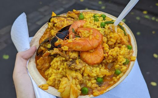 One of London’s largest and oldest food markets, Borough Market is recognized as one of the best food markets in the world, with over 1,000 years of rich history. The market focuses on “sustainable food production, short supply chains and social connection,” attracting visitors from all over the world. There are so many stands with ready-to-eat options and food to take home, including fresh cheese, bread, fruits, vegetables, spices, and jams. While exploring the food market, I spotted multiple people carrying Bomba Paella, a plate of rice and peas with chicken, chorizo, mussels, squid, and tiger prawns, from Furness Food Hut, and I knew I had to try it. It was absolutely delicious, and it was reasonably priced for the generous portions of food I received. I was super full, but I always have room for dessert! I enjoyed a warm and gooey chocolate chip cookie from The Cinnamon Tree Bakery as a sweet treat for The Tube ride home.